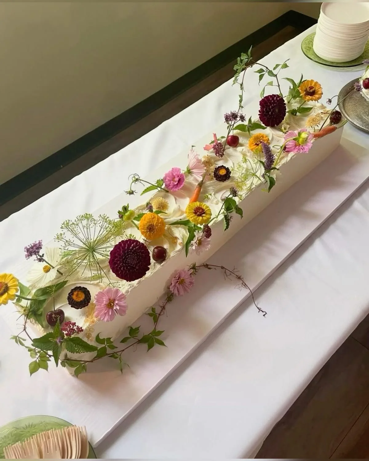 A single long tier made up of your choice of flavours finished in either a rustic, smooth or piped vanilla buttercream with fresh flowers (supplied by your florist), pressed flowers or fruit. Alternatively if you would like to keep some tradition, finished in textured fondant and sugar flowers. The design is as individual as you are.